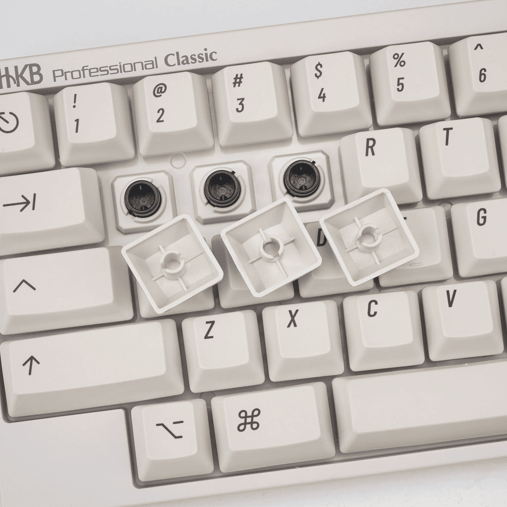 My idea was to offer a timeless looking keycap set that would never feel outdated. I wanted to create something with meaningful but easy to recognize legends (icons & alphas), the kind of symbols that feel intuitive and universal rather than trendy or complex, since that's also the DNA of the AEKII. The set comes in two main colorways - a clean light version with cream-colored alphas and a sophisticated dark variant with deep charcoal keys. Both versions maintain the classic minimalist aesthetic that made the original Apple keyboard so memorable.
