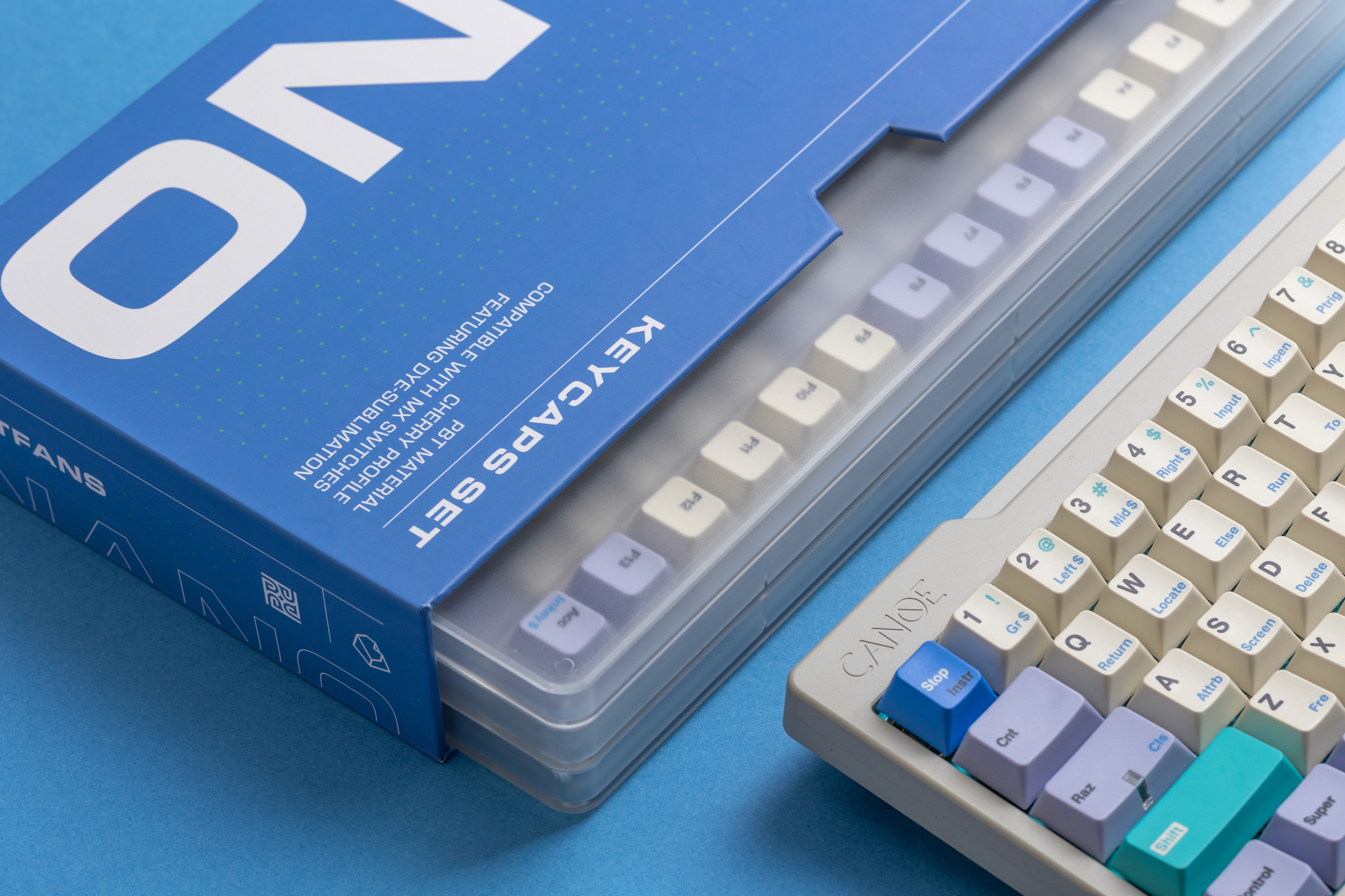 I wanted to create something that felt both nostalgic and fresh (once again). The Thomson MO5NR had this unique charm with its distinctive color scheme, and I knew I had to translate that into a modern keycap set. My goal was to honor the original computer while making the colors work beautifully on today's keyboards. This set features a dedicated colour palette inspired by that computer, with warm cream, cool grey and striking blue and mint accents that capture the essence of computing aesthetics from that era.