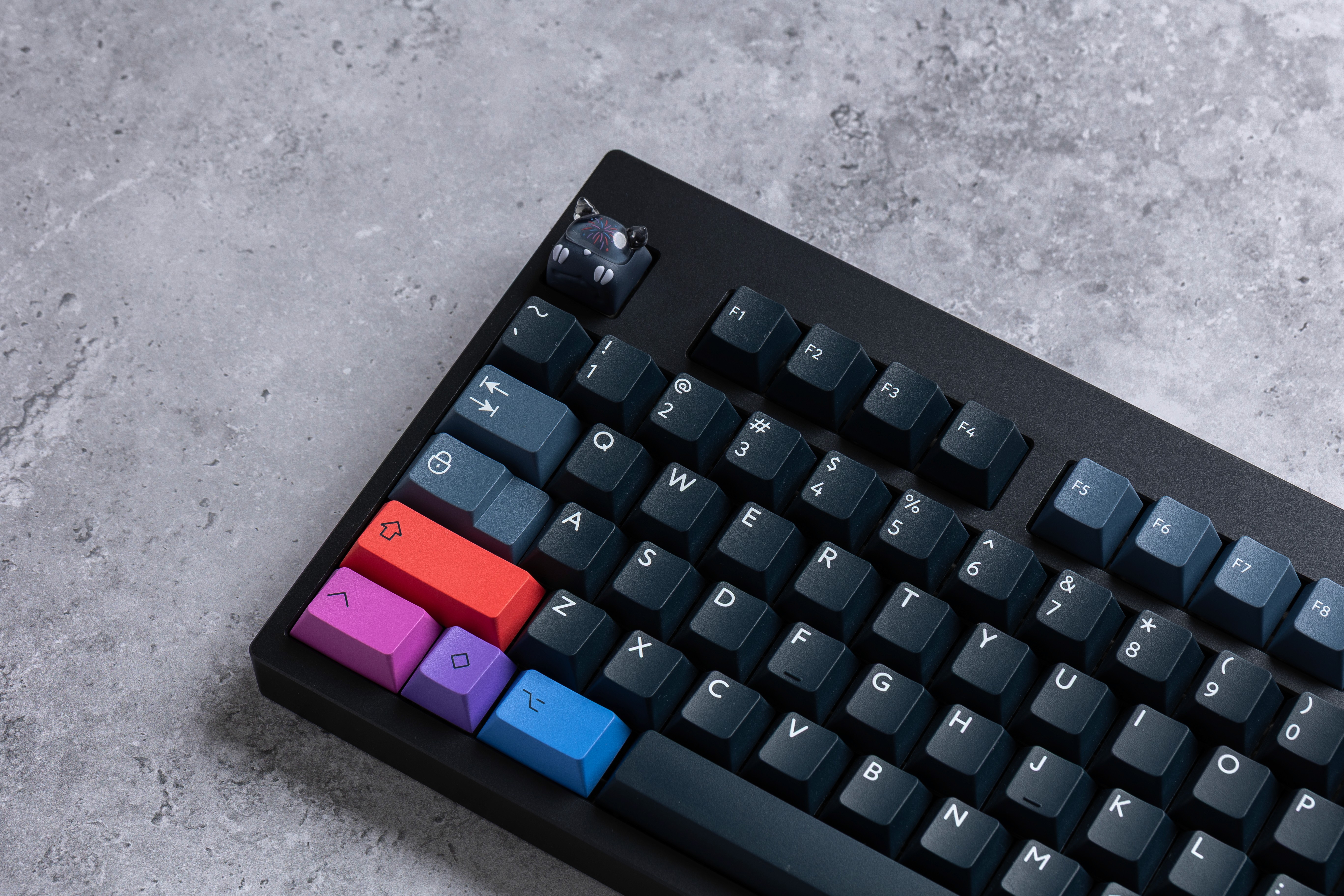This keycap set is built around the concept of balance, starting with a simple, clean foundation and giving you the choice to add colorful personality where you want it. I wanted to create something special for the very first PBTfans set, so I focused on the idea that simple doesn't have to mean boring.