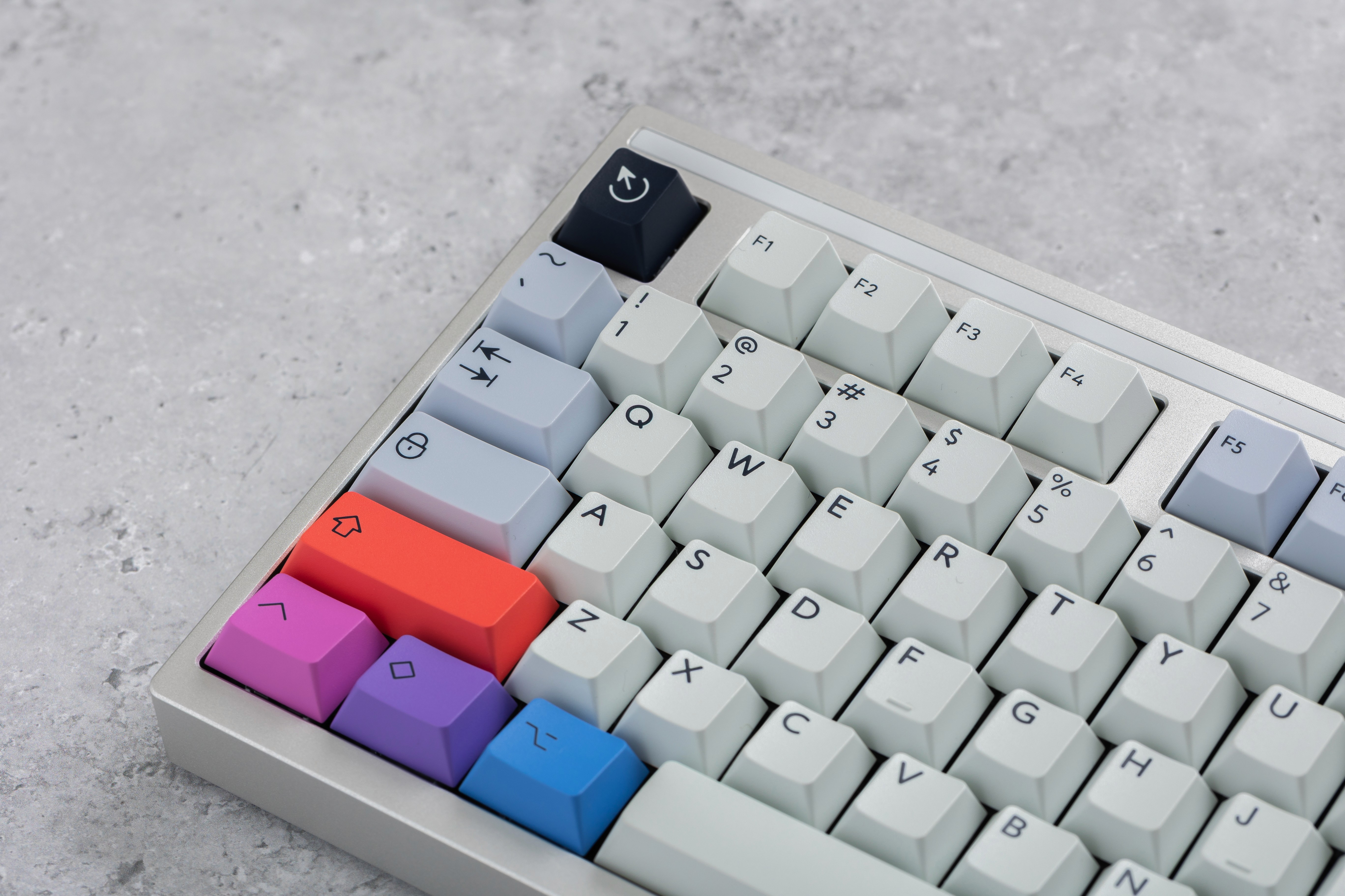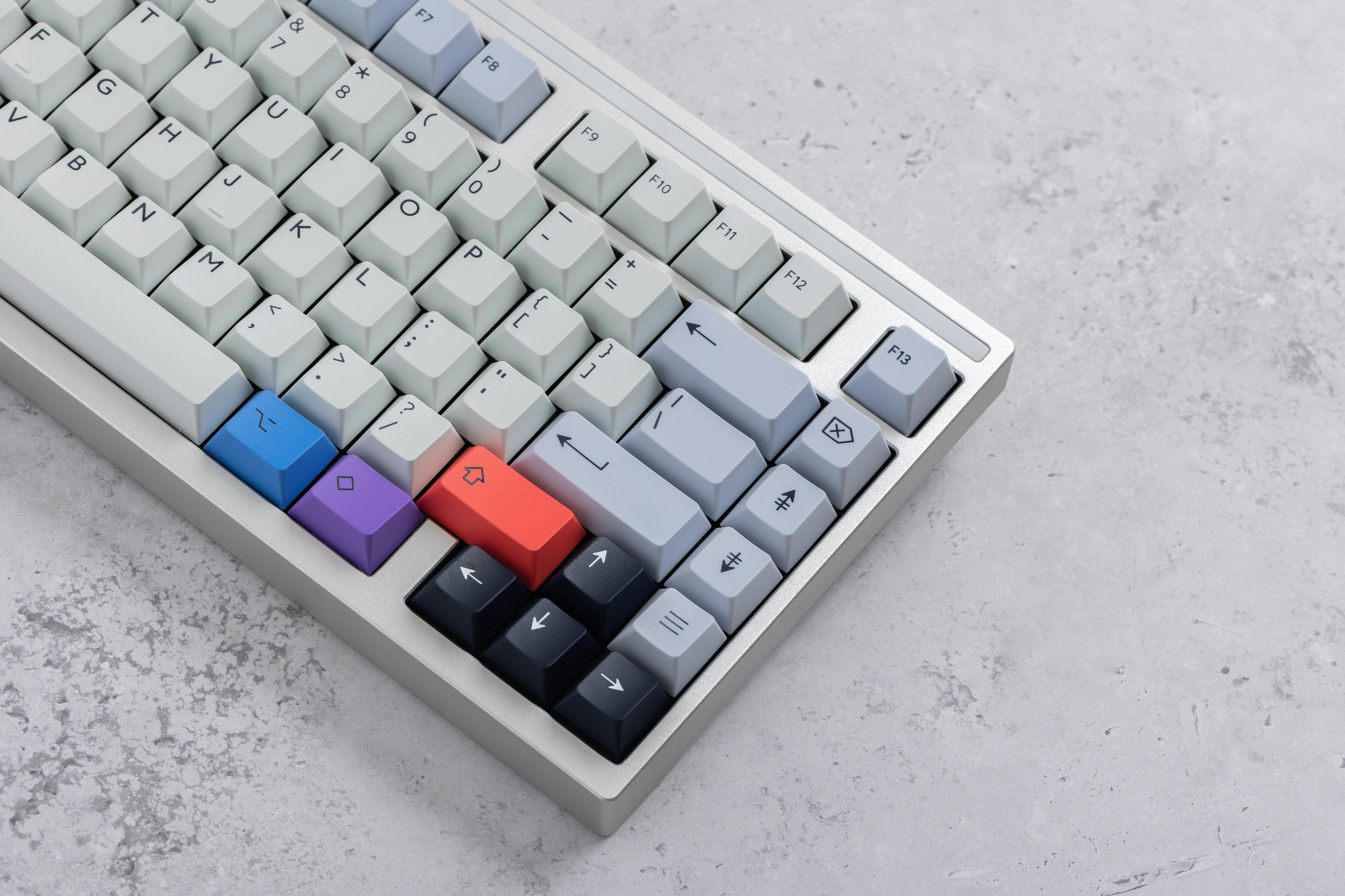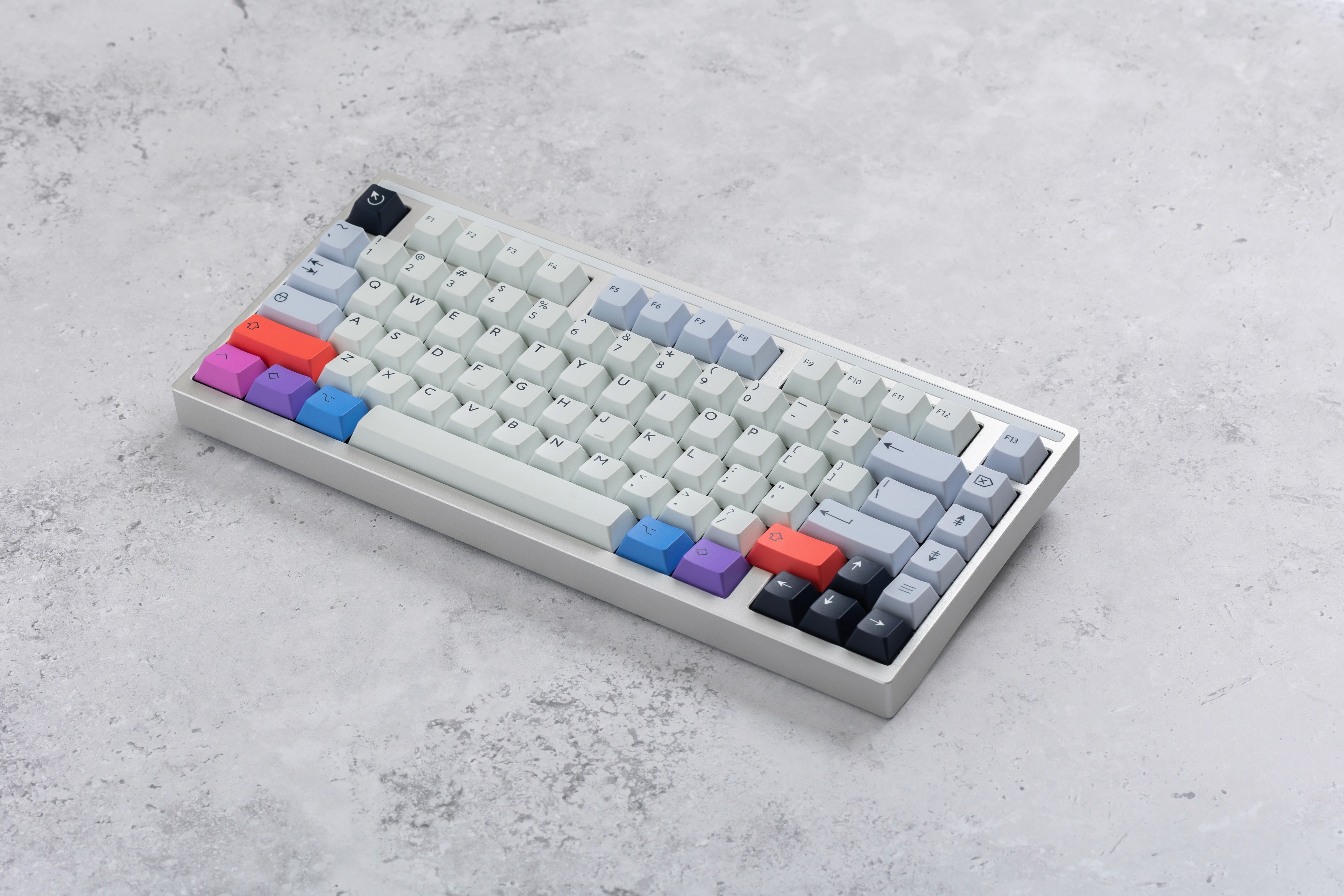 This is the lighter interpretation of my Spark keycap set philosophy, where I switched the foundation from deep navy to a clean, soft gray base. The same concept of balance remains: starting with a simple base color but giving you optional colorful accents. My approach was to prove that the same design concept can work in completely different moods.