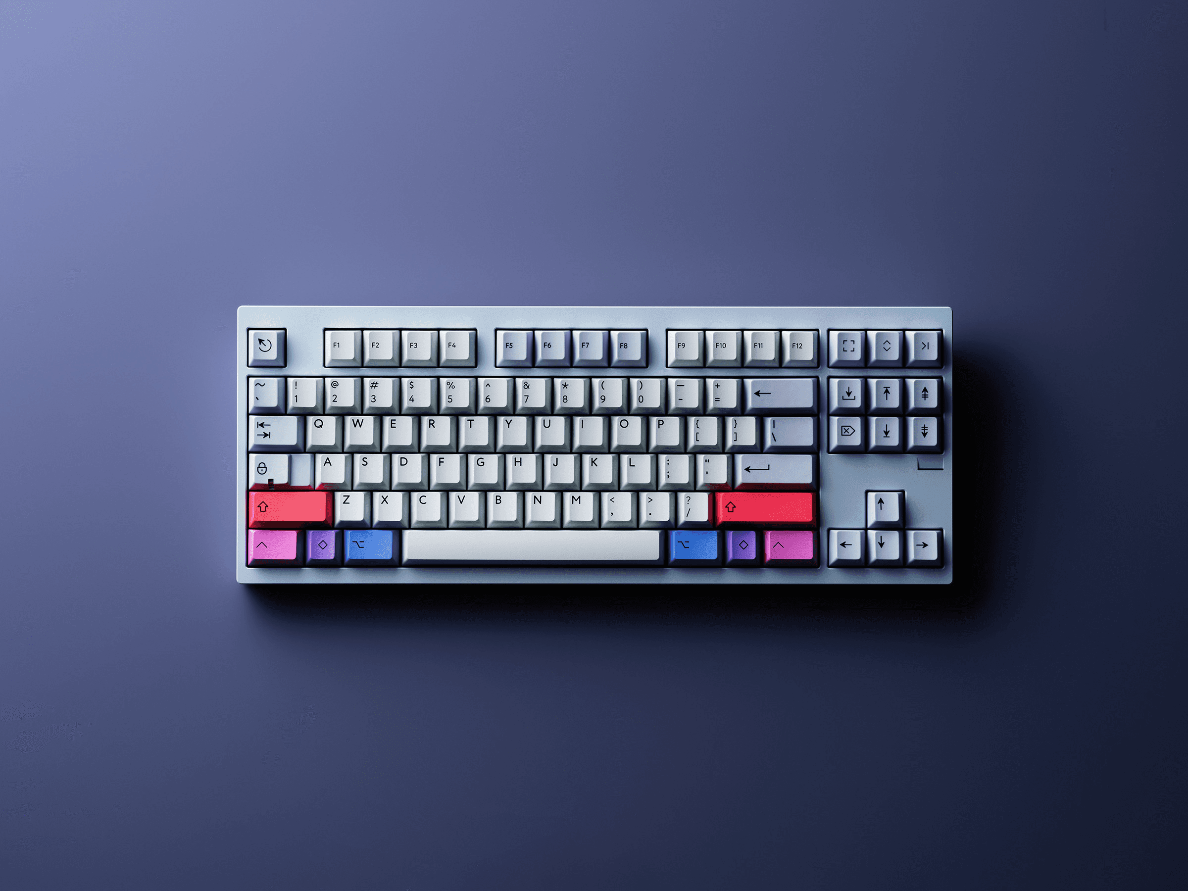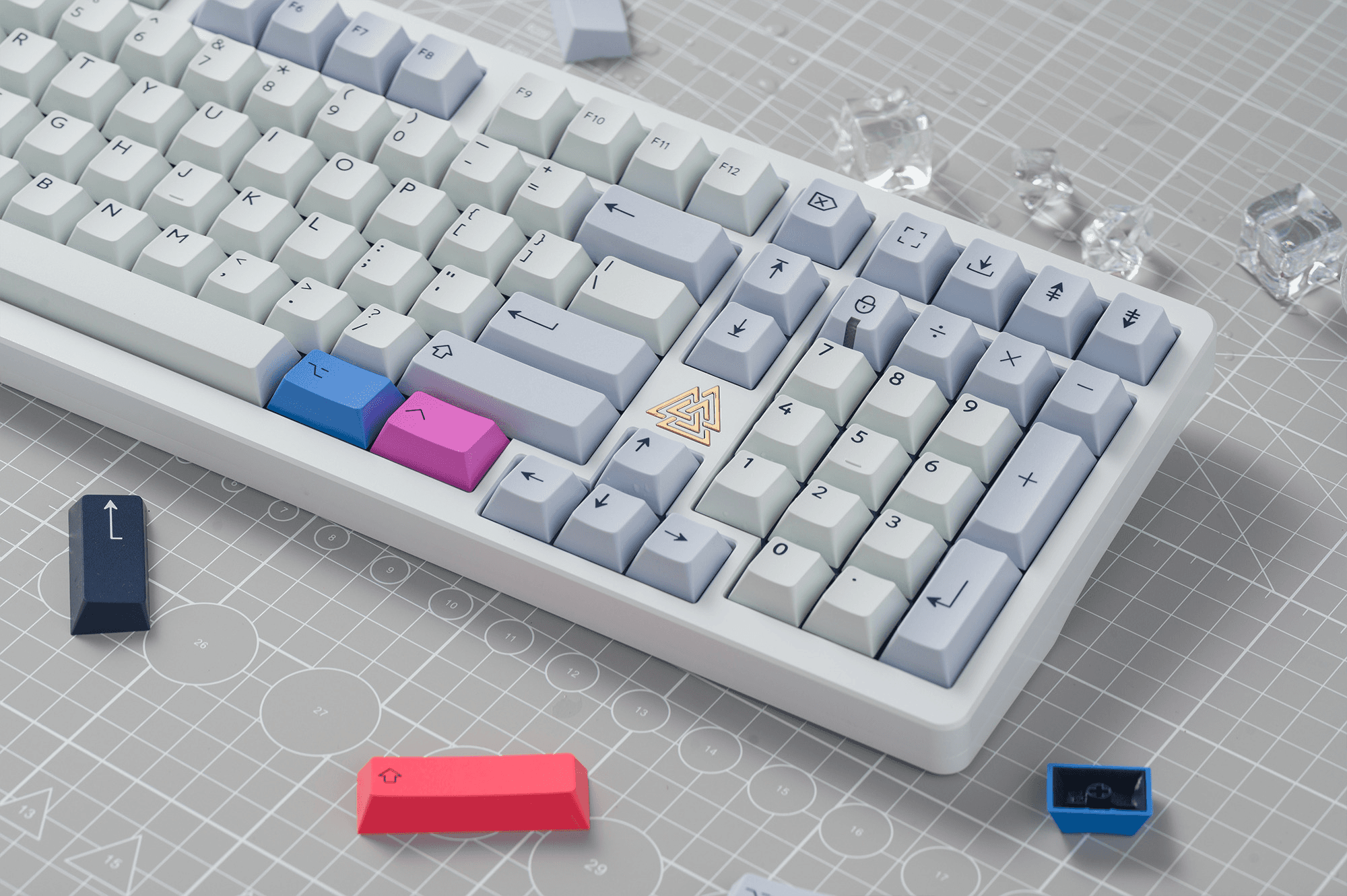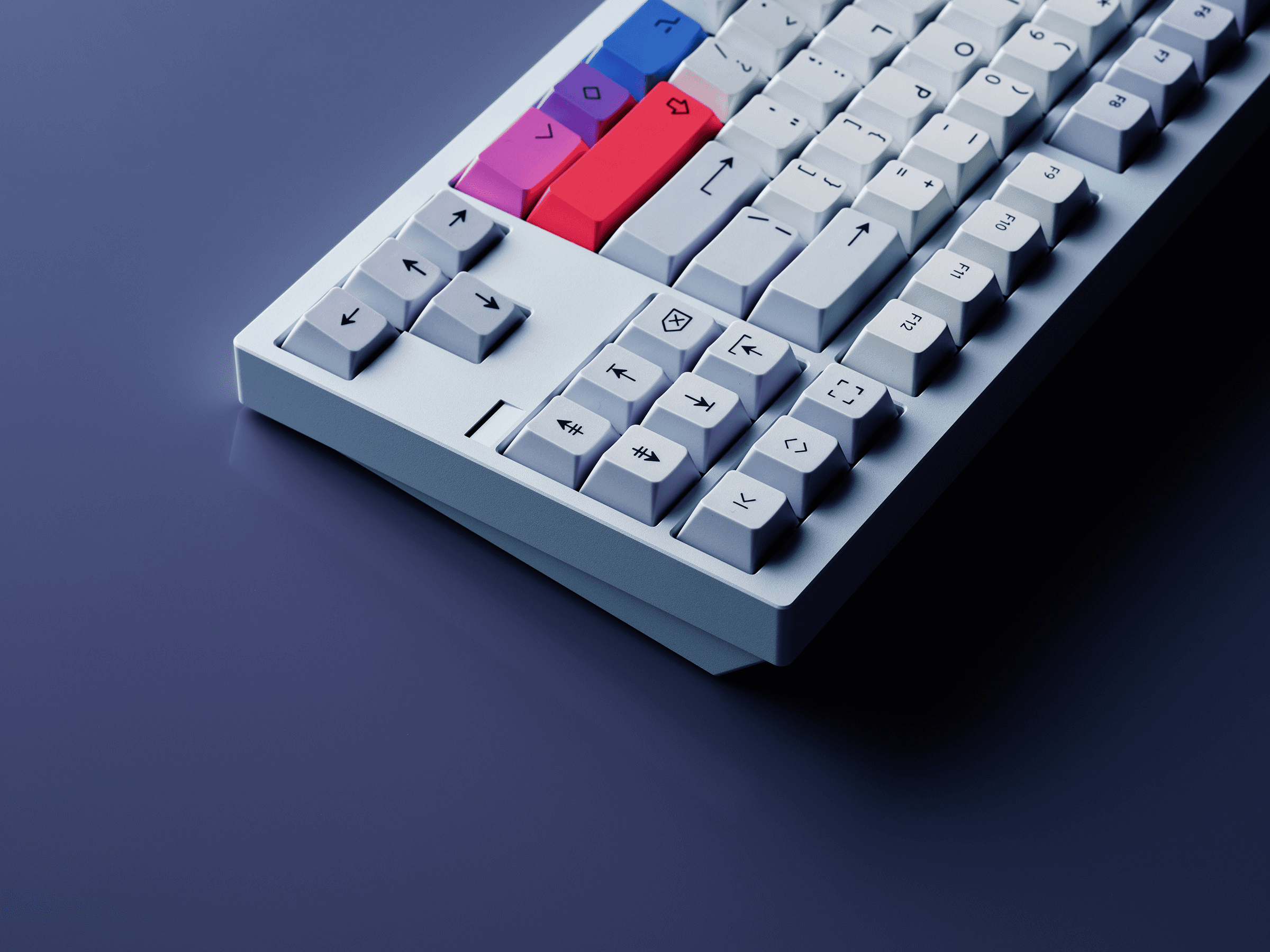 This is the lighter interpretation of my Spark keycap set philosophy, where I switched the foundation from deep navy to a clean, soft gray base. The same concept of balance remains: starting with a simple base color but giving you optional colorful accents. My approach was to prove that the same design concept can work in completely different moods.